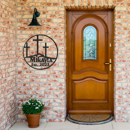 3 Crosses On The Hill Metal Sign