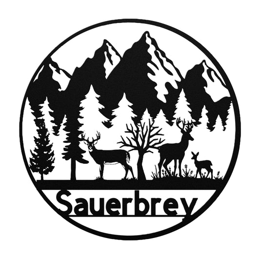 Deer and Mountin Metal Sign